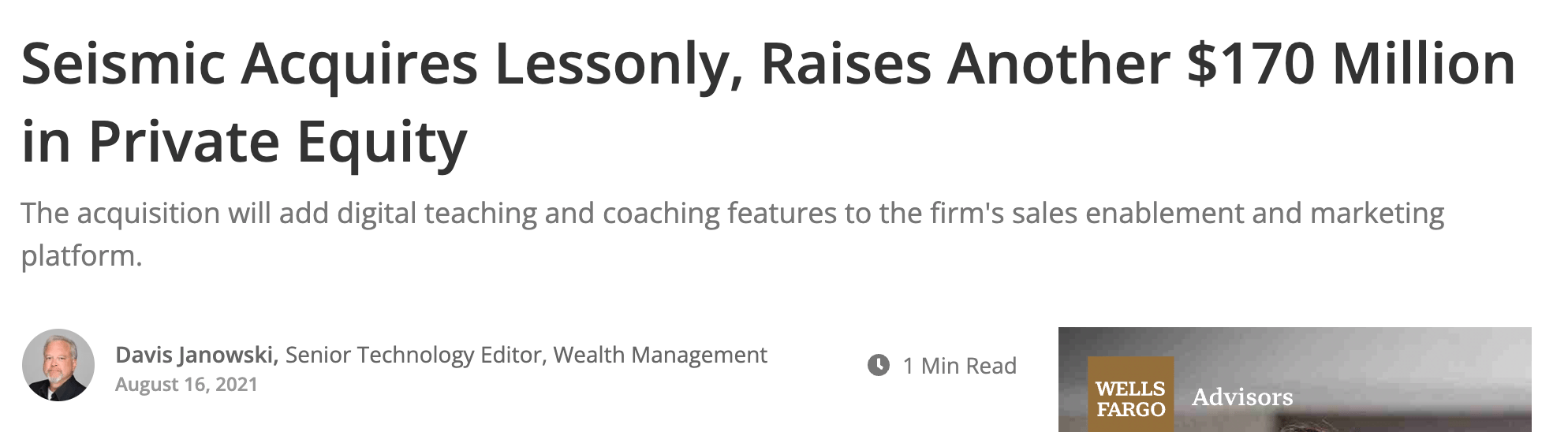 Do you know what happens when you hit? I know. I’ve been part of a couple of acquisitions, with the first meaningful one being Seismic's $300M acquisition of Lessonly in 2021.